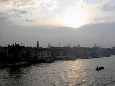 We continued through the channel between the island of Giudecca & the main part of the city.  We passed the 16th Century church of Il Redentore on Giudecca, considered one of the masterpieces of Antonio de Palladio (from whose name comes the architectural term “palladian”), built in thanks for the end of the plague that killed a third of the population in 1576. We sailed on toward the port, on the west side of the main city islands, passing a variety of scenic waterfront views.