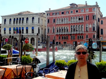 We sailed into Venice early in the morning on April 23 for a stay of almost 2 full days. Venice was founded in the 5th Century by people fleeing the chaos resulting from the disintegration of the Roman Empire and the incursions of the Goths.  They escaped into a large inaccessible lagoon and built villages on a number of islands there.  As time passed, the islands were connected with bridges and the city grew together.  Because of its inaccessibility by land, the Venetian Republic (not like our republics, since only aristocrats & the wealthy were represented) relied largely on sea power to develop into a great empire that dominated the eastern Mediterranean for many centuries.  We have seen its influence in such places as the Dalmatian coast cities & Cyprus. It came to an end when conquered by Napoleon at the end of the 18th Century and after his fall it was ruled by Austria until in 1866 when it was incorporated into the newly unified nation of Italy.