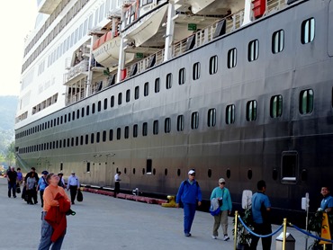 Three often visited venues. First is the Showroom at Sea, which is a theater hosting lectures, shows & other entertainment. It is also where you wait to board a tender boat when the ship is anchored rather than docked. The Rotterdam restaurant is where we eat almost every night. On this trip we are doing “open” seating, which means you come when you are ready & wait for a table (or make a reservation, although we have found that doesn’t work all that well). On prior Holland America voyages we have had assigned seating at the same table & time every night. We actually prefer the latter for several reasons, but we are travelling with friends we met on our South America cruise who prefer the open seating. Third is the Espresso Bar, located right by the library, so you have a nice place to sit and read while you drink your premium coffee. As part of a promotion, HAL gave us each a drink card that allows us up to $50 per day in beverages that cost $7.00 or less, so we visit the Espresso bar just about every day. The card also buys us wine with dinner & beer with lunch, but there is no way we can drink $50.00 worth in a day (you can’t use it to buy drinks for anyone else).