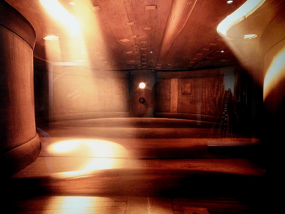A very interesting photo was on a wall near the Lincoln Center Stage. If you look only at the center section it looks like a large wood paneled room lit by skylights. But viewing the picture as a whole makes clear that it is something entirely different.