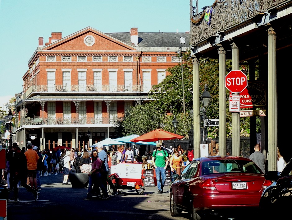 We spent two nights in New Orleans, where we had not been for some time. We stayed in a hotel a block off Canal Street, a main thoroughfare running along the edge of the French Quarter. We spent our full day in New Orleans walking around the French Quarter, an area rife with atmosphere, It has rows of old houses, most now stores, with wrought iron balconies. Its crowded streets are always fun to explore, as are the boutique shops selling many kinds of local wares.