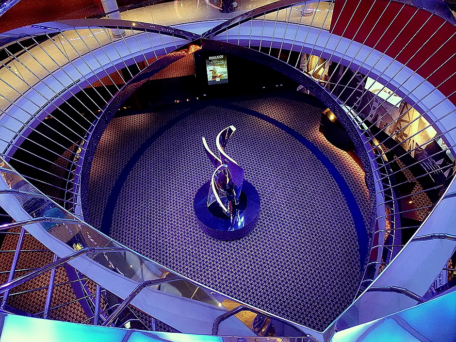 HAL’s music walk, on all of the larger ships, consists of performing groups in four different genres. Lincoln Center Stage features a classical piano quartet and alternates in the same venue with the BB King Blues Club. It was a lovely venue with a glass fronted balcony where we usually sat. Billboard Onboard was a lounge with two pianists playing and singing together (not “dueling,” as is sometimes said) and the Rolling Stone Rock Room across the hall housed a really good young band with a very fine lead guitar. We visited all of these venues except the BB King (a matter of timing rather than taste), but the Lincoln Center Stage received most of our attention because their classical performances were really outstanding. We were told that these musicians auditioned separately for the gig and were formed into a group after being hired by HAL’s music contractor. Their repertoire was determined by the contractor who employed them. We had different quartets on the two legs of our cruise, but both played exactly the same shows with almost exactly the same pieces. We don’t see how that could work on a Grand Voyage, since a week’s worth of repertoire wouldn’t go very far on a three or four month cruise.