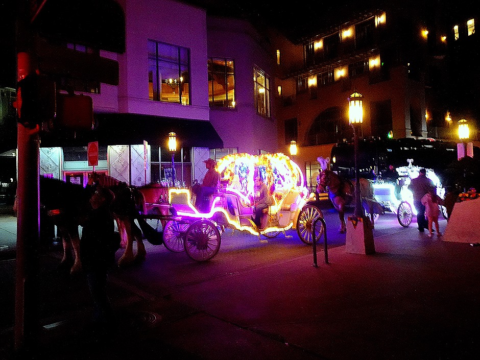 Before embarking on the ship we spent a couple of weeks on the road, leaving on March 2. Stopping in Memphis on March 4 on our way to Texas to visit Mary’s brother Joe we wanted to have dinner at our favorite BBQ restaurant, Corky’s, but discovered that it was closed for repairs after a fire. We ate at one of their other locations instead where the food was good but the ambience not nearly as much fun. On March 5 we came across a rural library in Maud, Texas, near Joe’s house, then on March 6in Ft Worth we all dined at Cattlemen’s steakhouse, which was still as good as when we had our pre-wedding dinner there almost 50 years ago. We continued to San Antonio, where we spent the afternoon of March 7 shopping among the myriad Mexican vendors at the Market Square emporium, and also enjoyed delicious Mexican food at a restaurant on the River Walk. We walked around the River Walk for a while, then back on the street we encountered horse drawn carriages lit up like they were part of the Disney electric light parade.