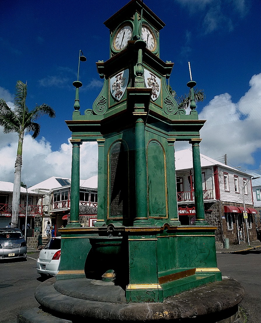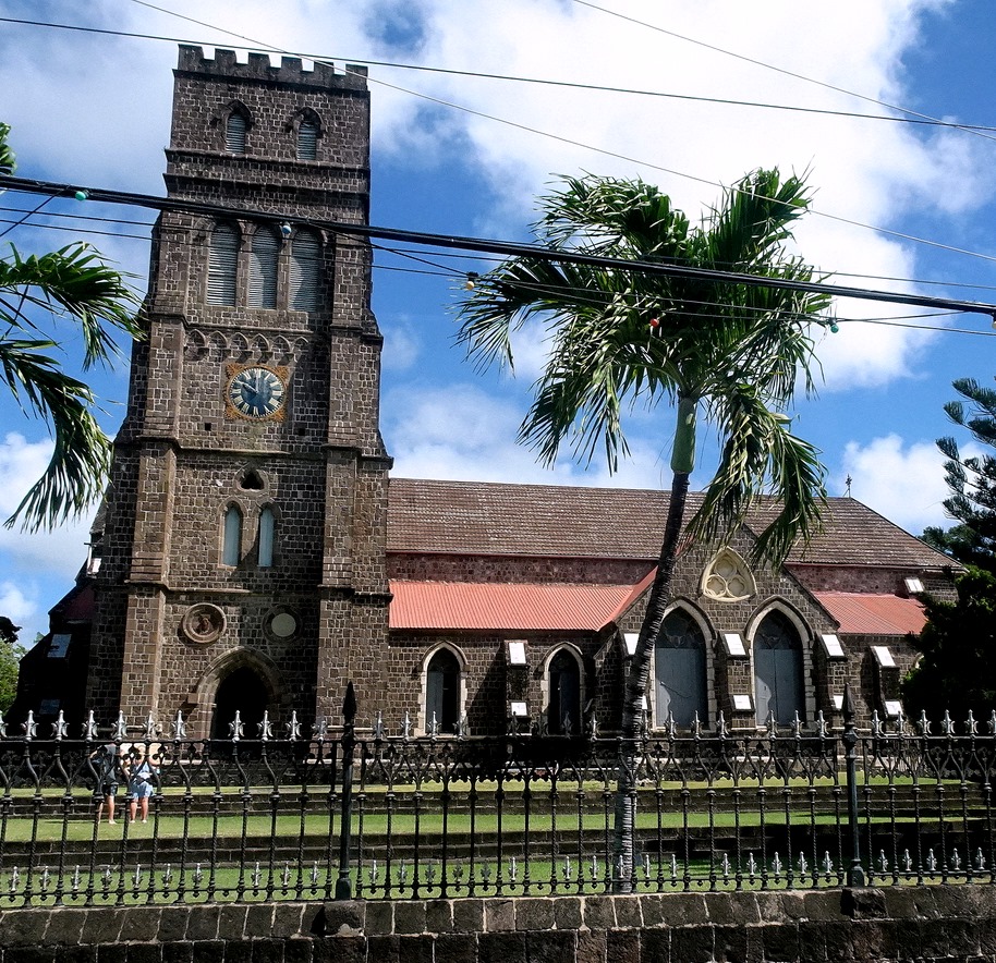 The excursion started with a panoramic (stay on the bus) tour through the streets of Basseterre. You can’t really get to know a city through the windows of a moving bus and it’s also hard to get decent pictures. Among other things we saw in passing was the Berkeley Memorial with its clocktower standing in the middle of the Circus, said to be modeled on Piccadilly Circus in London. We also passed St George’s Anglican Church, originally established in 1710 then rebuilt after being largely destroyed by an earthquake and hurricane in 1842 & 1843. The current building was consecrated in 1859 then restored in 1869 after a devastating fire.