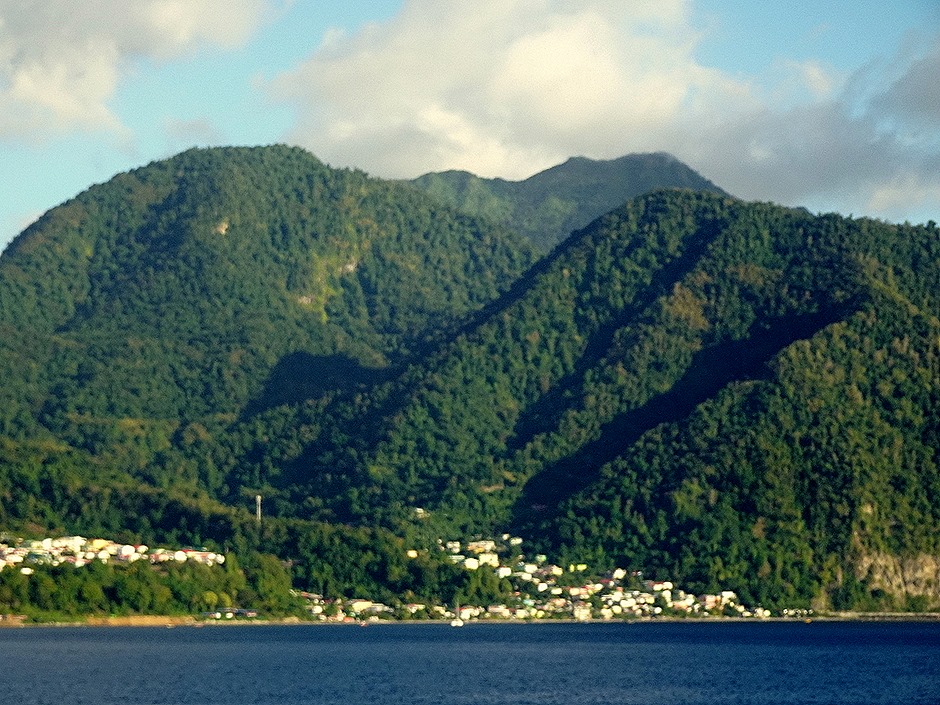 From there the bus took us back to the dock. We spent some time looking at the vendors’ wares but found nothing we wanted. We would have walked around Roseau but of course we were now back inside the police perimeter and could not leave. So we boarded the ship. Altogether this was a very interesting day on a beautiful island. There were some nice views of the island as we sailed away.