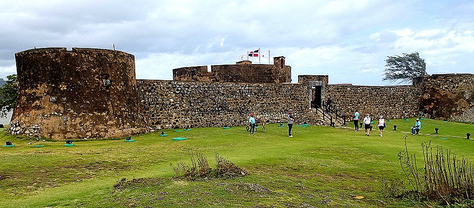 Amber Cove is a self contained cruise ship port built by Carnival in 2015 with swimming, shopping and even a zip line, we think. Having just been to Grand Turk and Half Moon Cay we didn’t need any more of that so we signed up for an excursion to Puerto Plata, a city of about 330,000 some five miles away on the island’s north coast. Some ten or twenty miles further is the site of the first European settlement in the Western Hemisphere, La Isabela, founded by Columbus on his second voyage. There had been an attempted settlement in 1492 but it had been destroyed by the local people by the time Columbus returned. La Isabela lasted until 1496 when Columbus decided to move the settlement to what is now Santo Domingo.