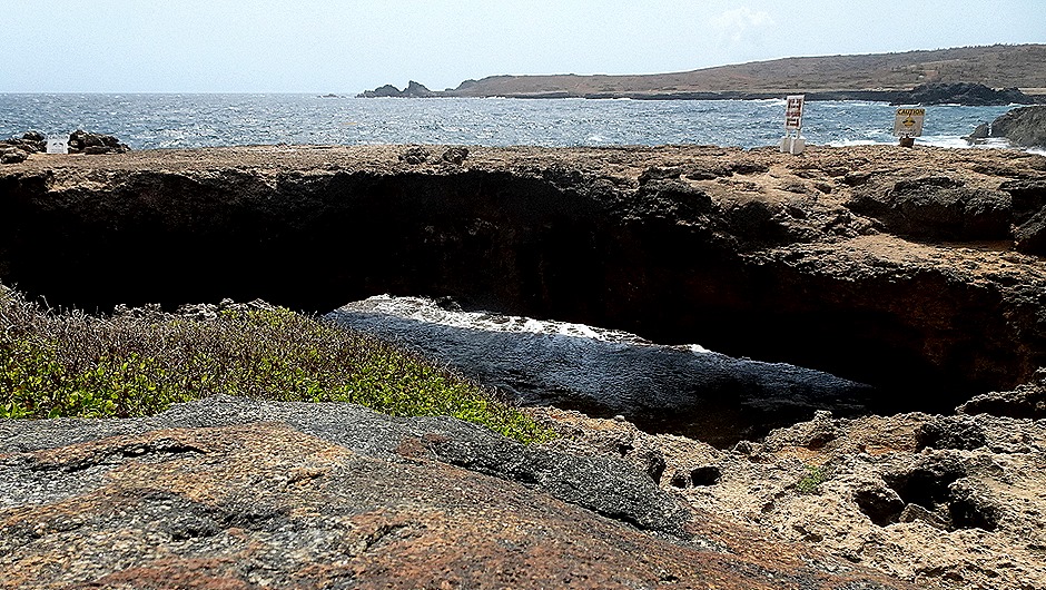 Arikok National Park encompasses a stretch of dramatic sea coast that includes a natural bridge. There was originally a large bridge, 100 feet long and more than 20 feet above the water, but it collapsed in 2005. Still standing near it is the Baby Natural Bridge, measuring 25 feet long and about 3 feet above the water. Still beautiful though. There is a sign reading “Caution. Possible Collapse” and who could doubt that after what happened to its big brother. But some people still walked out on it. The surf on the nearby shore line & what is probably the remains of the larger bridge is pretty spectacular.