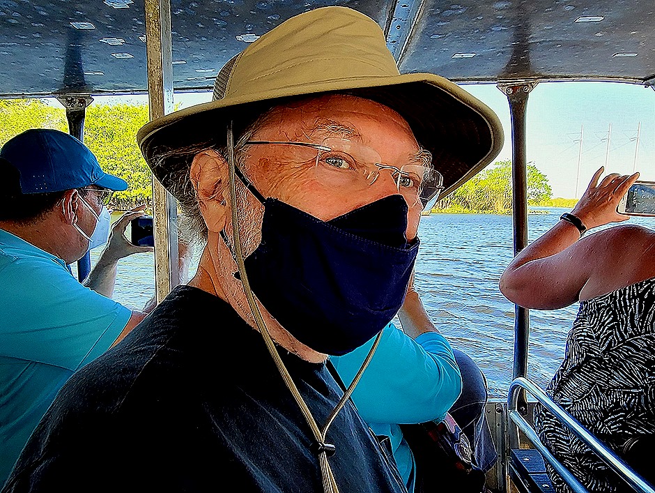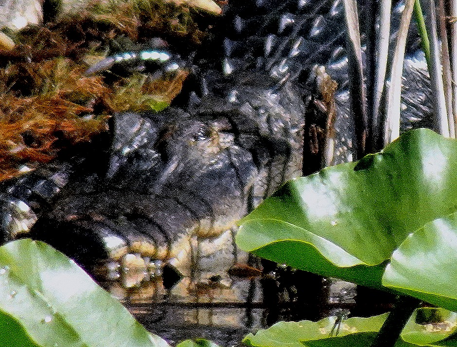 The Everglades is famously home to alligators, among other indigenous species. In the 21st century, however, Burmese Pythons began appearing here. It is speculated that some young ones were purchased as pets (exotic pets being popular in Florida) and were released by their owners when they became more difficult to control. Accurate assessment of their numbers is almost impossible for a number of reasons but it is estimated that there are between tens of thousands and hundreds of thousands living in the Everglades today, eating indigenous animals and causing many to become endangered. We did not see any pythons (they hide and are tough to spot) but we did see alligators along the edge of one canal.