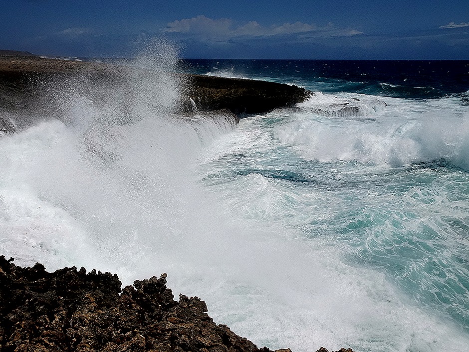 Shete Boka (Seven Inlets) National Park stretches some 7 miles along the seashore. It was established in 1994 to protect these inlets that are nesting areas for sea turtles. We didn’t see any turtles but the surf pounding the rocky shore was quite a sight. There was some interesting small flora eking out a living in the dry, hot and rocky area behind the seashore and also some cacti. And a monument to the island’s ubiquitous iguanas.