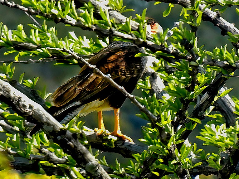 During this part of the drive we saw a good deal of flora and fauna. Unfortunately, much of it was hard to photograph from a bus window, since it was often far on the other side of the bus and the birds were not inclined to pose for pictures. But here are a caracara, a type of hawk, and a yellow shouldered parrot. We passed a huge termite nest as well.
