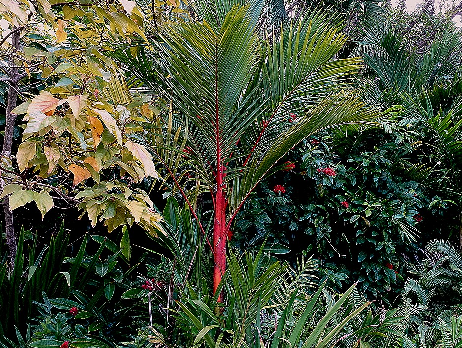 We returned along the inland path surrounded by many flowers, palm trees and other fauna.