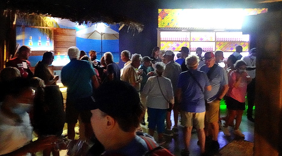 The passengers continuing on the second leg were required to have a new COVID 19 test, which was administered before we reached Ft Lauderdale. But that same day they apparently discovered they had a lot of positive people on board (not us, thankfully), because they suddenly re-imposed a mask mandate for most indoor venues and set up a quarantine section of the ship. We don’t know why they didn’t anticipate needing this and set it up at the beginning of the cruise because quite a few passengers had been quarantined over the previous month or two & there were quite a lot of unused cabins on our cruise. So with a minimum of planning they could easily have had a quarantine section prepared just in case. Instead, to create a separate quarantine section now they required a number of passengers to change staterooms to other areas of the ship . . . for one night before reaching Ft Lauderdale. We talked to one couple in this situation who were, to put it mildly, not pleased. Anyway, once most of the old passengers left in Ft Lauderdale the Captain eliminated the mandatory masking order and made masking only “recommended.” You can imagine, I am sure, the low percentage of people who followed this recommendation (we did). Then, on our first morning out of Ft Lauderdale it was announced that continuing passengers would have to get yet another Covid test; it was unclear why, but apparently something had been wrong with how the tests were administered on the way to Ft Lauderdale. We duly lined up, took the test and were negative again. We don’t know if anyone tested positive and was quarantined . . . they don’t release that kind of information to mere passengers.