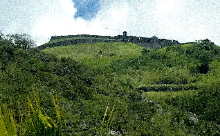 We visited this island a number of years ago, before the beginning of this blog in 2012. At that time we rode on the small gauge railroad that takes you around the coast in cars with an open upper level. It was built in the early 20th century to transport sugar to the port from plantations around the island and was converted to a tourist attraction after the sugar industry was closed in 2005. It’s a nice ride, but since we had already done that we decided this time to take an excursion to see Ft Brimstone, a world heritage site.