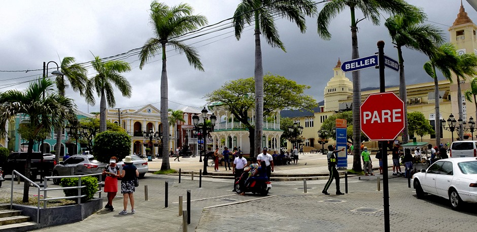 I mentioned that the rum was very smooth, and it really snuck up on you. Those of us who participated in the sampling staggered out to the bus and we drove to the center of town. Puerto Plata was founded sometime between 1496 and 1506 (contemporary reports vary) . The first British ship of enslaved people delivered 400 captives from what is now Sierra Leone here in 1563. In 1605 the Spanish depopulated and destroyed the town to counter English pirates and a hundred years later it was reborn with immigrants from the Canary Islands. Then in 1863, during the Dominican Restoration War for independence from Spain Puerto Plata was entirely razed, then rebuilt beginning a couple of years later. This is why the Fortaleza is the only surviving building from before that time and also why the city is characterized by Victorian buildings. Independence Square, the central square of the city, is surrounded by such buildings.