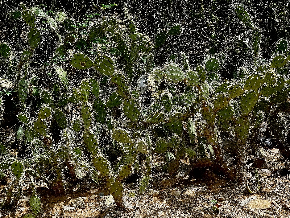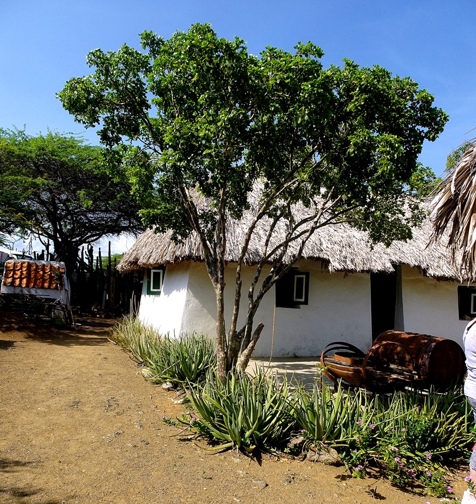 We had spent our previous visits entirely in the town of Willemstad, which is a fine approach because this is a very interesting and enjoyable city. But we decided on this visit to spend some time seeing the rest of the island, which we were able to do on an excursion. Our first stop was a “Kunuku House,” a slave house from an old plantation. It is a small structure with white walls and thatch roof and only a door and two small windows in front. As in Bonaire, there was a cactus fence around the property. Our guide on the property gave us an extraordinarily detailed and interesting tour, demonstrating just how people used the items on display in their daily lives. A bit of a downside was that most of the lengthy presentation involved standing outside and it was very hot. During the presentation a nice little bird with an orange head sat in a bush listening.