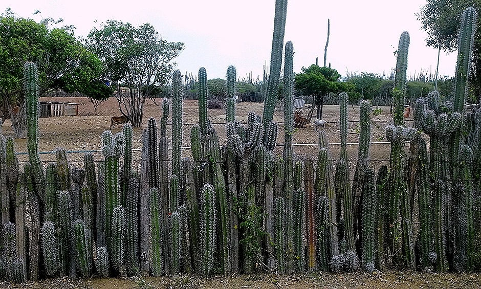 You may have noticed some large cactus in the lake pictures. In fact, much of the island is covered in cactus, some quite beautiful and some looking a little worse for wear. The people here actually build fences out of cactus lined up against a wire and wood frame. This is very effective, as you can imagine, in keeping wild and stray animals out and domestic animals in.