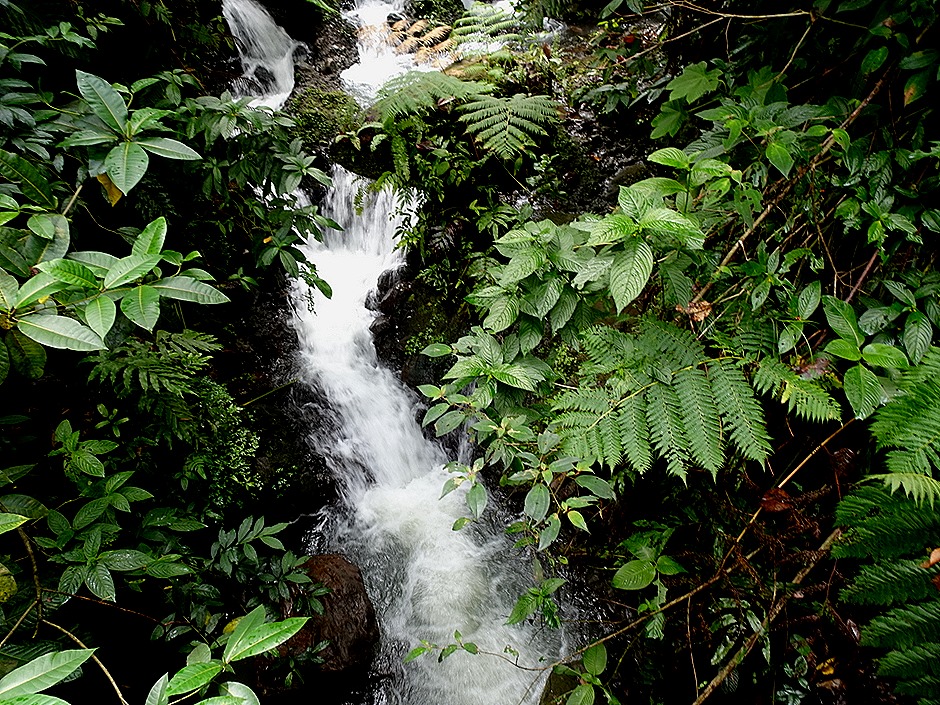 We stopped at the visitor center at the entrance to the trail to Trafalgar Falls. It is a nice walk through deep forest to reach the falls, where there is a wood viewing platform. This is a twin falls, with the higher one on the left (about 125 feet) called “Father” and the shorter one on the right called “Mother.” Each falls has a separate source. There are pools at the bottom of the falls and the one on the left has warm water. The cascade of boulders on the left under the Father falls is the remains of a huge rockslide in 1996 that covered what used to be a cascade down a face of smooth rocks.