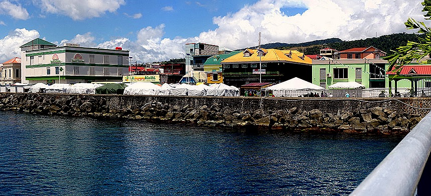 Dominica is a particularly lush island situated between the French islands of Martinique & Guadalupe. It was occupied by the Carib people (after whom the Caribbean Sea is named) when Columbus sailed by and named it Dominica, and there is still a small community of them on the Eastern side of the island. Dominica became a British colony in 1763 at the end of the Seven Years War (French & Indian war in the US) and achieved independence as a republic in 1978. Roseau is the capital and largest city in Dominica (about 15,000) and that is where we docked.