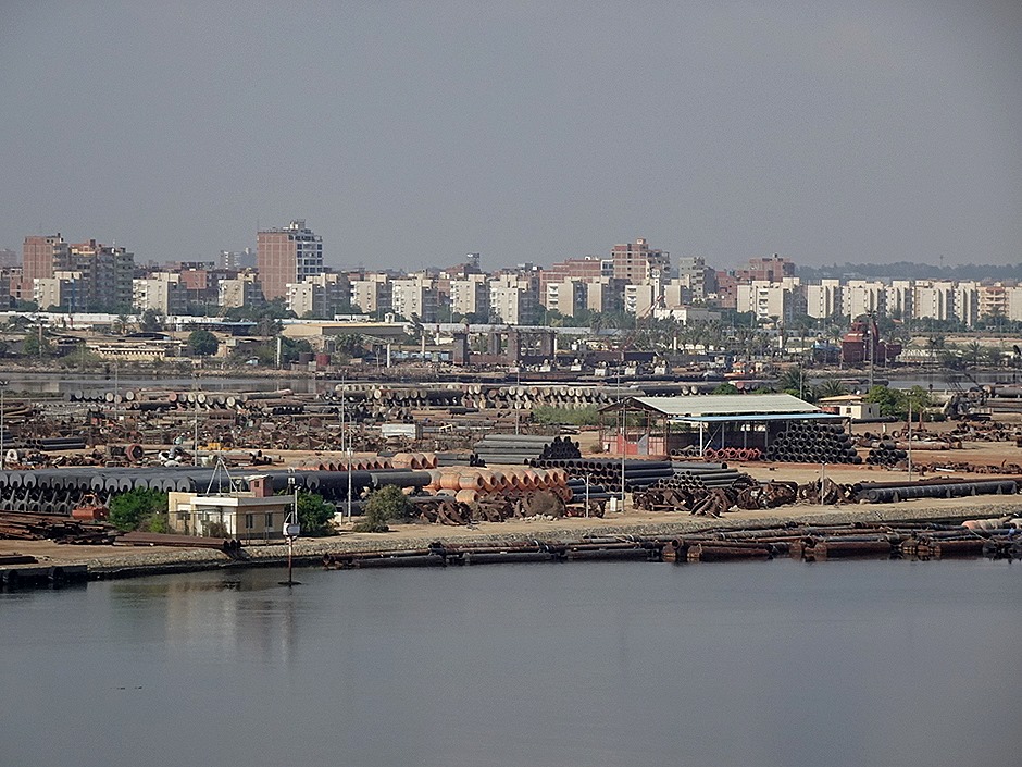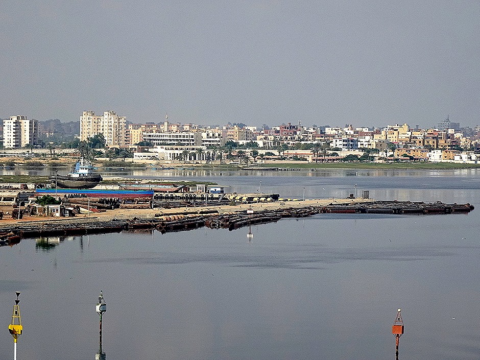 At the southern end of the Little Bitter Lake we passed the dock for the town of Gineifa and then reached the outskirts of Suez, the southern gate to the canal.