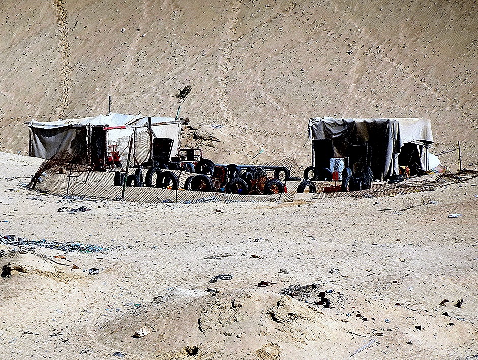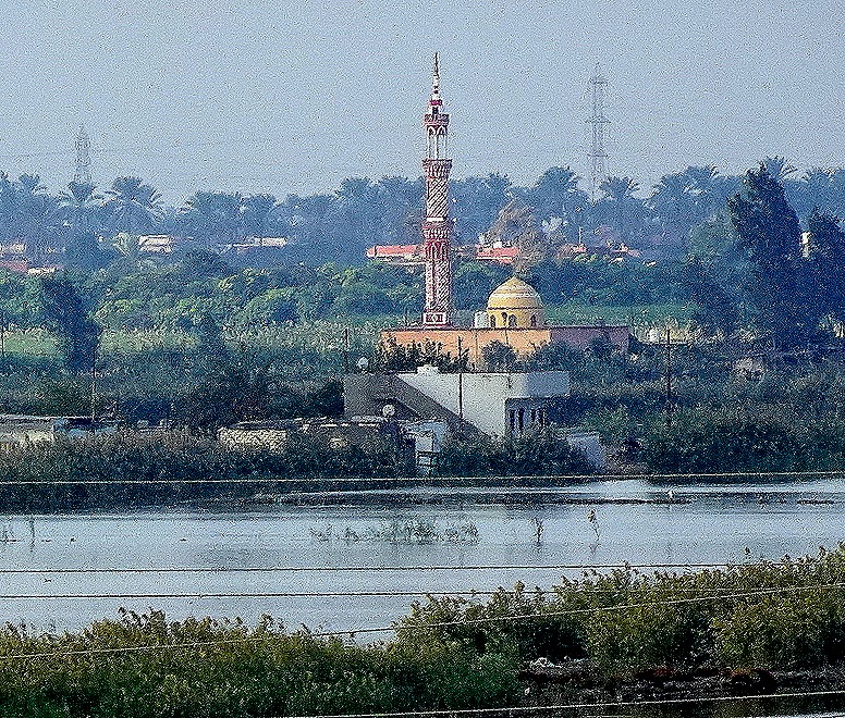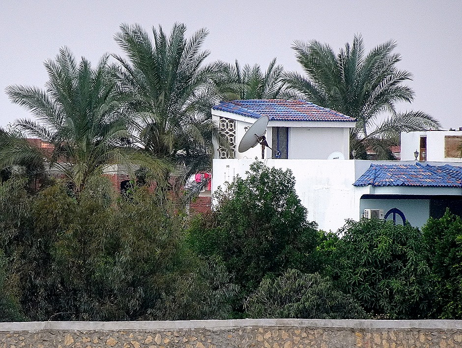 A variety of buildings appeared along the sides of the canal, from long blocks of apparently new apartments to military installations with watchtowers to single houses to mosques, along with some mystery structures.  We also passed a date orchard.  Last time we were here, in 2016, several of the military posts had nice welcoming signs etched into the sand banks, but we didn’t see any of that on this visit.