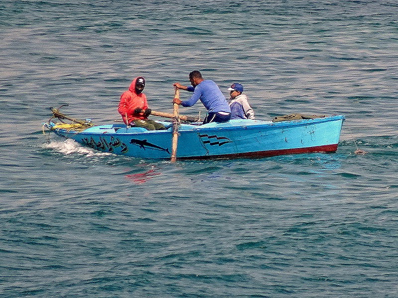 During the long, sunny & hot passage through the canal we saw many small fishing boats in the water along with some small sail boats and two guys who appeared to be walking the length of the canal.