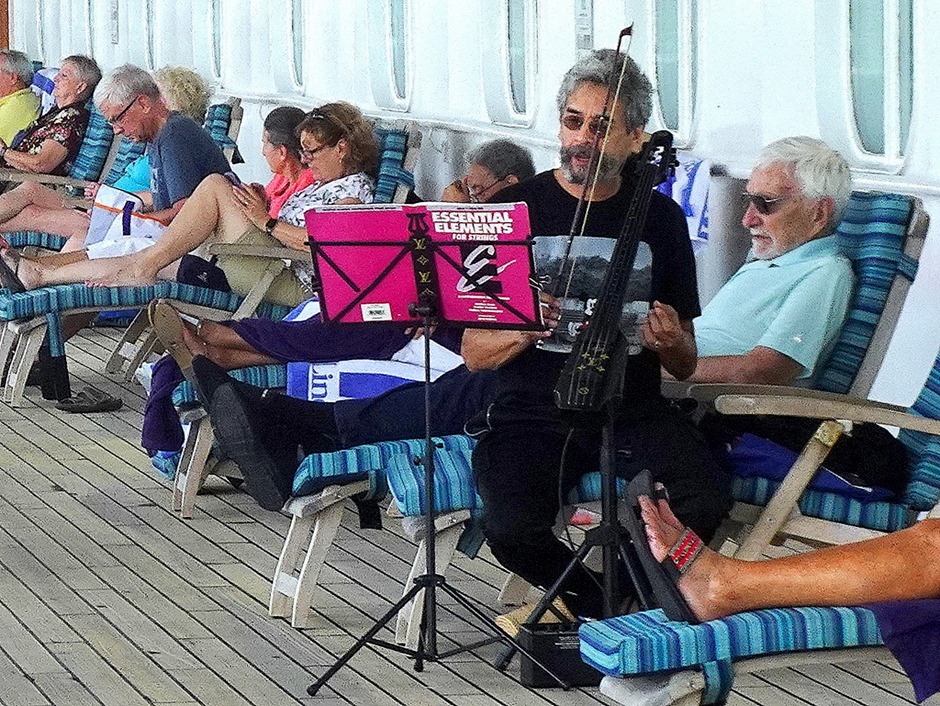 The folks on board seemed to be enjoying the transit.  A lot were out on deck watching the scenery, some with other occupations such as one fellow sharing his cello practice with the rest of us.  The worst part (assuming you did not forget sunblock) was a plague of flies that followed us through the canal constantly flying in our faces and landing on our skin.  I had the brilliant idea of applying mosquito repellant, hoping it would work on flies too, but they actually seemed to like the deet and were in no way deterred.
