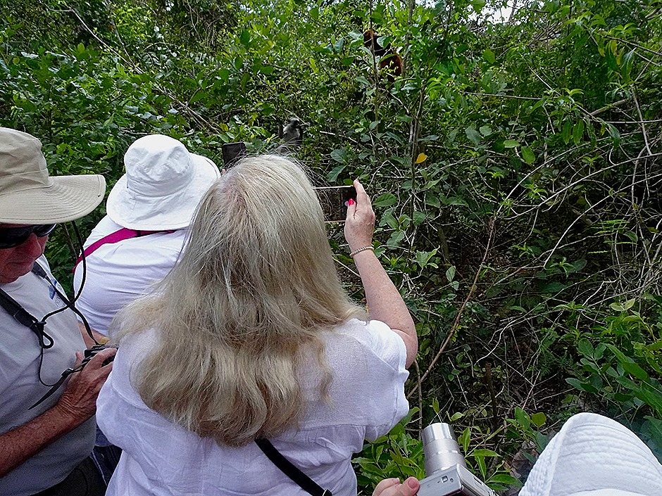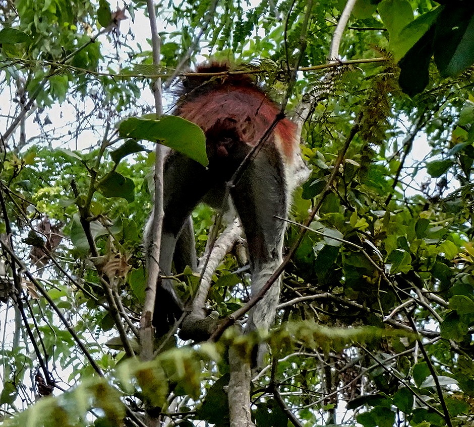 Yes, we were part of that crowd of visitors; what else could we do? Fortunately the monkeys didn’t really seem to mind, since they are undoubtedly used to these visits. We did manage to get some pictures of monkeys looking our way. You will notice that from the front there is no indication they have any reddish fur. Instead, they are black and white with pretty wild punk like hair shooting out of their heads.
