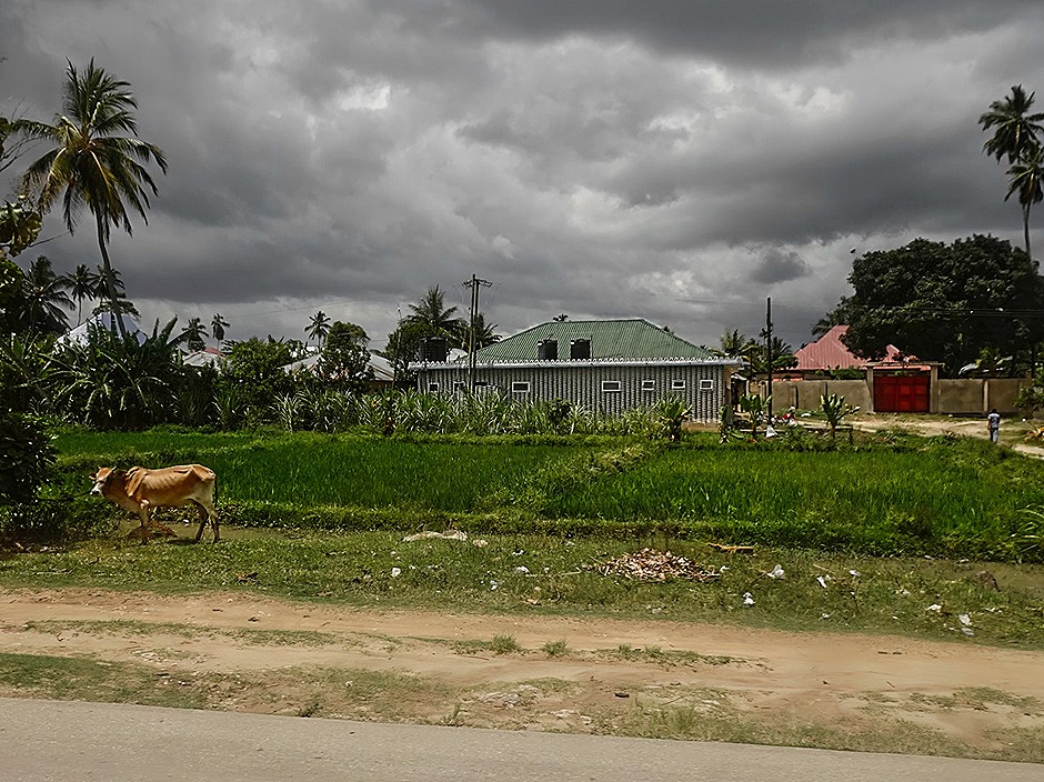 Our next destination was a spice farm, but it was a long drive enabling us to see something of the countryside as we passed. Among other things, there was a small neighborhood mosque (we think), several produce markets and a cow in somebody’s front yard. There was plenty of poverty to be seen but what looked like nice places as well.