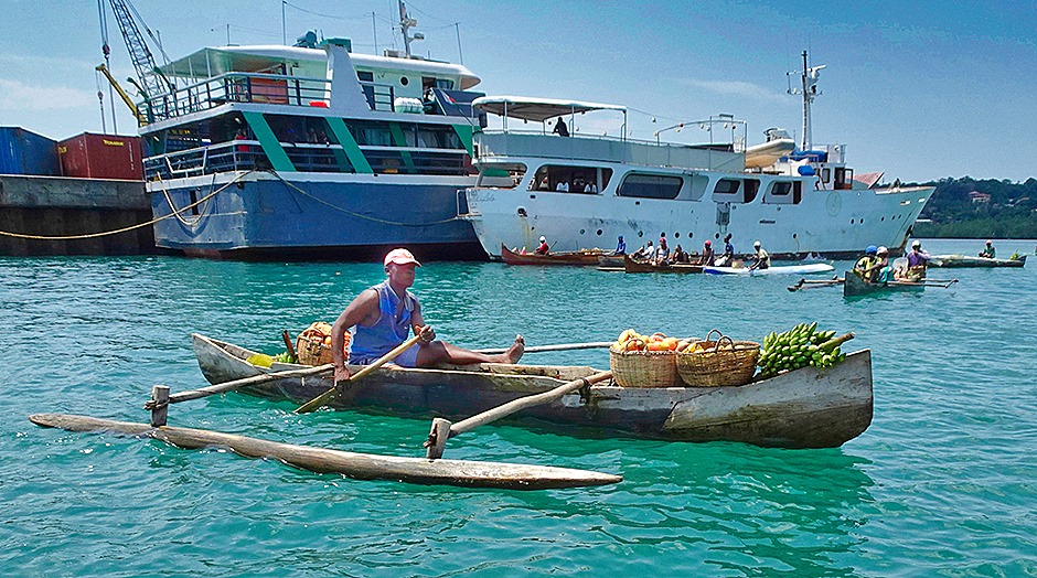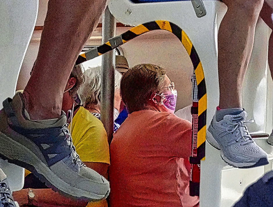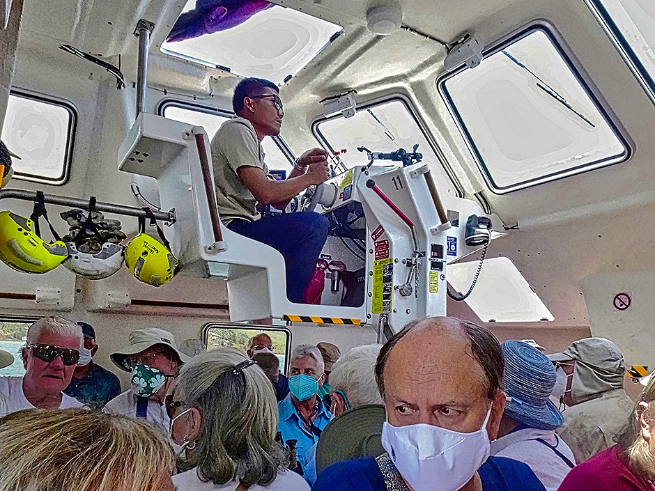 We were scheduled to visit here during the world cruise in 2018. In fact, in anticipation one of the entertainment officers had obtained a lemur suit he wore on occasion on the ship (lemurs are famously endemic to Madagascar and we will get to them in more depth tomorrow). But we were unable to stop in this port in 2018 because of an outbreak of plague(!) in parts of Madagascar. So today was our first visit here. This was a tender port, so in the morning we boarded a tender boat to the port to meet the excursion we had booked. On the way in we passed a number of small boats.