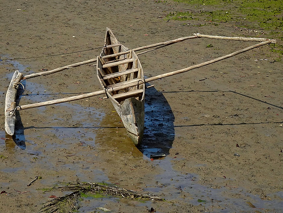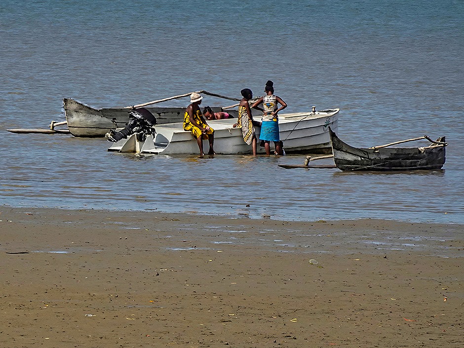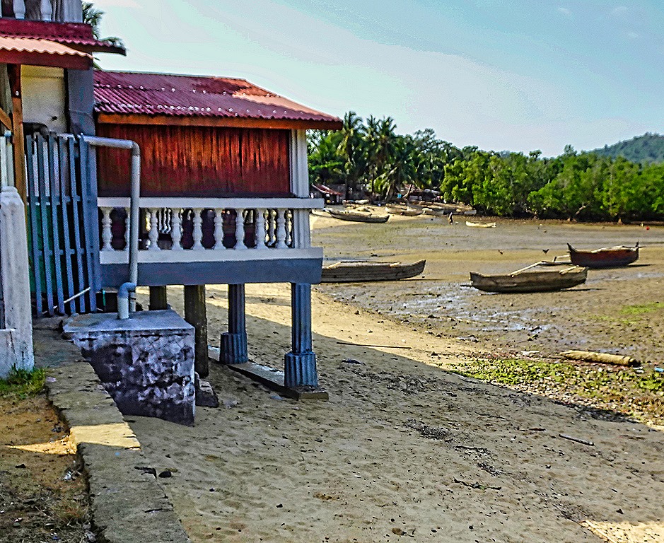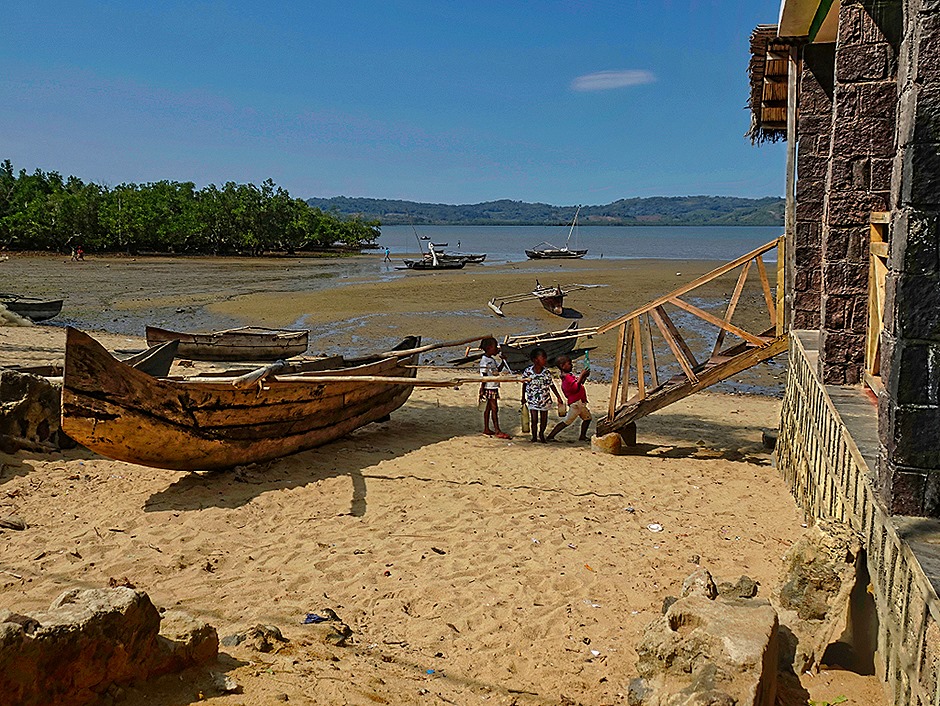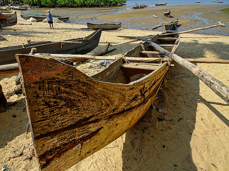 We stopped for lunch at a small fishing village reached by a long drive over dirt (and rock) roads. There was a small beach with houses along its edge and a number of small boats on land and in the water. It was low tide so the water’s edge was pretty far from the beach.