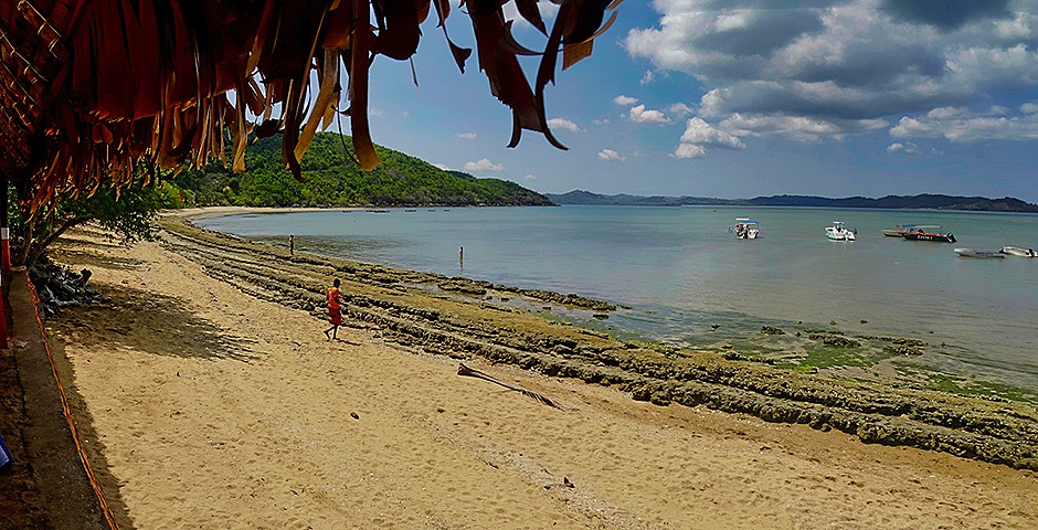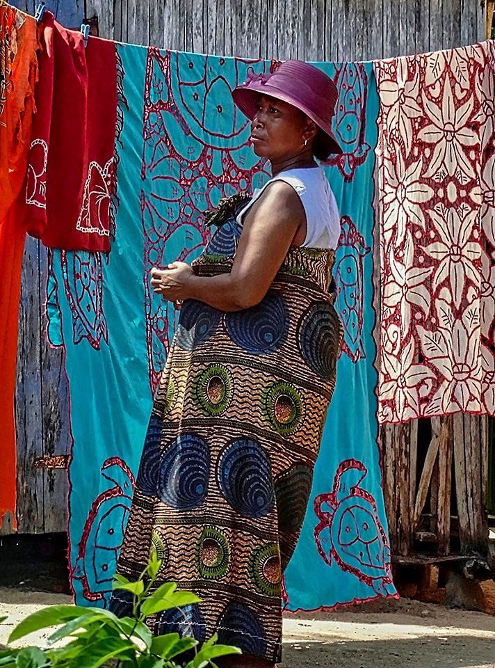 After a lengthy boat ride we came ashore on a beach. It was a “wet landing,” which means you step out of the boat into the water and wade ashore. There is what appears to be a small village on the edge of the forest by the beach, which we think may be called Ampasipohy. There were boats around so it is likely a fishing village, probably with some agriculture, but it is certainly used to receiving travelers. When we arrived folks were busily setting out their products for sale. We saw no evidence that these clothes, embroidered table cloths and souvenirs were being produced in the village, so were they made in Madagascar or somewhere else, like China? It was hard to tell.