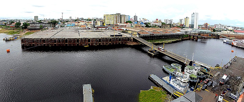 We spent January 14 in Manaus, a city of some 2 million residents located about 1,000 miles up the Amazon River in the Brazilian rainforest, where the Rio Negro and Rio Solimoes come together to form the Amazon. Because the Amazon rises and falls about 40 feet every year we were docked at a floating pier that rises and falls with the water. With the water so low right now there was a steep ramp from the pier to the mainland part of the dock area. These are new piers and mostly for cargo, so ship passengers are not permitted to walk out of the dock area on their own. A shuttle bus was provided to take us from the ship to the cruise terminal a few blocks away on the mainland.