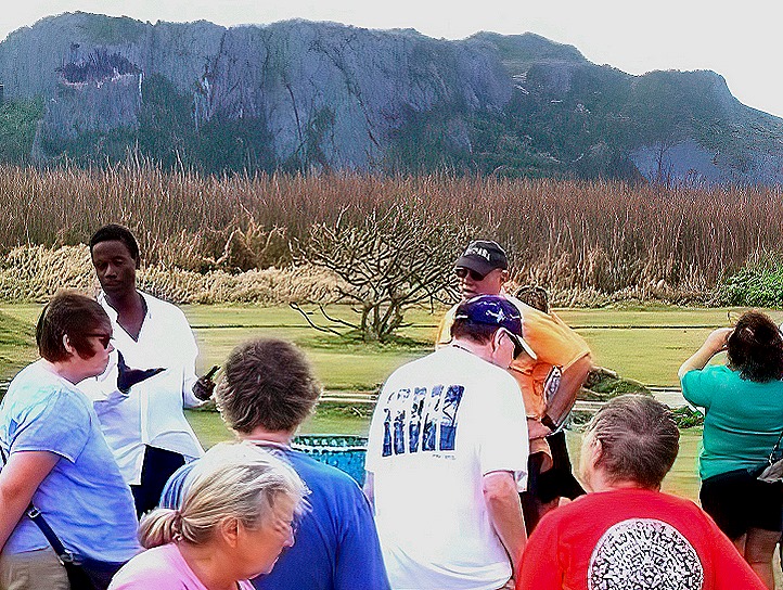We joined a private excursion here organized by our friend Tina and we were very glad we did. It was led by Walt Goodridge, a knowledgeable and engaging tour guide who was born in Jamaica. As you will see below, Walt provided a really excellent excursion with knowledgeable commentary. If you are going to visit Saipan, you really can’t do any better than Walt (just google him). We were supposed to meet him at the port gate but he was nowhere to be found when we arrived there. He drove up 20 or 30 minutes later and explained that the company with whom he had reserved a van months before had none available when he arrived this morning so he had to scramble to obtain another one. We were impressed (and relieved) that he accomplished that in so short a time.