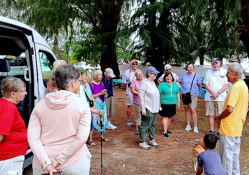 Afterwards we drove to the home of Lino Olopai, a Carolinian elder who was an accomplished traditional navigator. He used the stars, wave movements and sea animal and bird movements to sail canoes between Saipan and Guam and beyond. The Carolinians are a separate ethnic group that came here from the Caroline Islands during the 200+ years of Spanish control. The Spanish had moved to Guam the small number of Chamorros who survived the conflict and diseases brought to Saipan by Spanish settlers. While the Chamorros were kept in Guam the Carolinians arrived and settled on Saipan. There has been some level of hostility between these groups ever since. Lino’s niece (we think) was one of Walt’s assistants and he spoke to us about his navigation experiences and techniques. Very articulate and interesting.