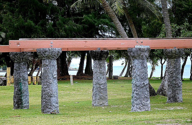 We drove on to an area called Red Beach, one of the first landing sites for the American invaders. In two days of fighting on these beaches the US Marines had some 3500 casualties. During the night of June 16 the Japanese attacked with 44 tanks and 1,000 infantry and lost 31 of the tanks in what is considered the first large tank battle in the Pacific. There was a shelter in the park supported with concrete pillars designed to look like Latte Stones, which had been used centuries ago in Saipan as well as in Guam. Off shore we could see a couple of American patrol ships. Walt said they patrol these waters 24 hours a day and that they have been told if you ever look out there and don’t see them, head for the hills.