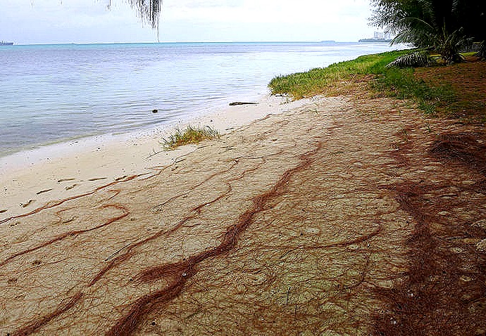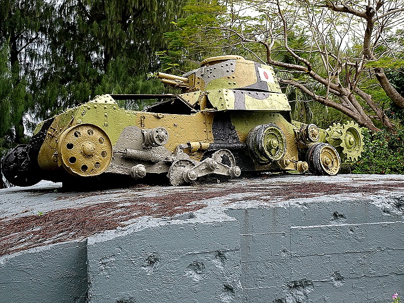 Nearby is a sort of memorial, comprised of an old Japanese pillbox, complete with bullet holes, that housed machine gunners defending the beach. On top is a small Japanese tank, very much the worse for wear. And off shore in this area we could see the tops of two amphibious Sherman tanks that never made it to shore during the invasion. Some scuba divers were using one of them as a tether for their boat.