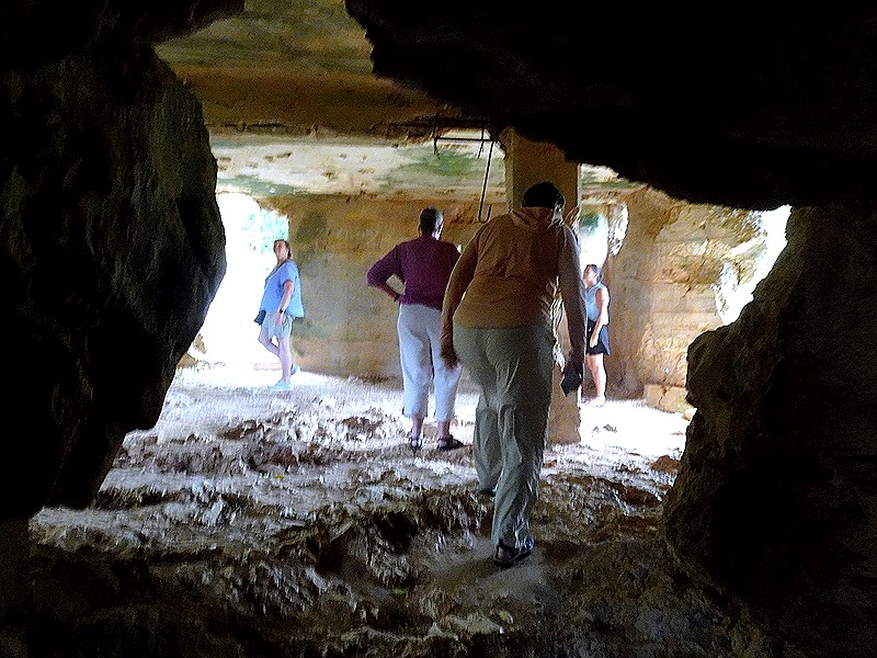 There is a theory that Amelia Earhart was imprisoned here with her navigator, Fred Noonan, after their plane disappeared in 1937.  Noonan was supposedly beheaded and Earhart kept in the jail until her death sometime before the American invasion.  Walt, our guide, is a strong believer in this theory, having interviewed individuals and descendants of people who claim to have seen her (described as a woman with short hair wearing men’s clothing) in the prison.  We think that the cell with two openings below was the one pointed out to us as having housed Earhart (although this cell block was reportedly for men).  Shortly before our visit there was a report of a claim of discovery of her plane on the ocean bottom, yet to be confirmed.  We don’t know the truth of what happened to Amelia Earhart (really, nobody does for certain), but after this visit it will be interesting to follow any additional evidence that may be discovered about her fate.