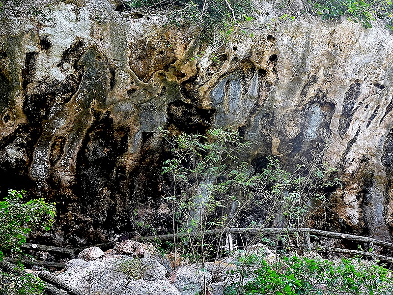 As you can see from the last picture above, Suicide Cliff is very high above Banzai Cliff.  From there you can look down not only on Banzai Cliff, but also on the little that remains of a Japanese air field called Marpi Point Field.  Actually, the air field was uncompleted when the battle of Saipan ended and the Americans completed building it and used the airfield for some time.  Walt gave us a talk about Suicide Cliff when we arrived below at Banzai Cliff.  The edge of the mountain cliff has cactus that has been carved with graffiti; it was a disquieting view over the edge to the land far below.
