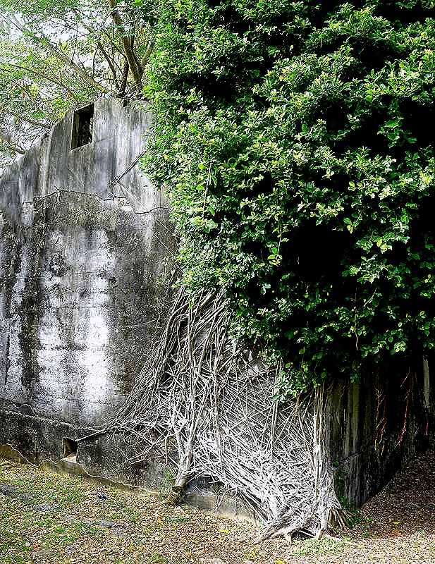 DSC05099DSC05101DSC05100      Our last visit before returning to the ship was to the old Japanese Jail in Garapan.  You will recall that the Japanese were awarded control of Saipan in the treaty ending World War I and governed the island until losing the battle of Saipan in July, 1944.  This jail was built in 1929 and was probably used by the police in the usual manner and also occasionally for a few war related prisoners, often for a transitory period.  Today it is a ruins, but interesting to visit.  There are three buildings: a large cell block (reportedly for men), a short cell block (reportedly for women) and what is probably an administrative building (no bars on the windows).  You can walk through the hallway outside the long cell block, which no longer has a roof.
