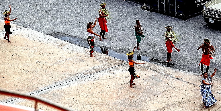 We reached Saipan, another important World War II battleground, on the morning of February 19. A welcoming dance troop was performing on the dock below our veranda.
