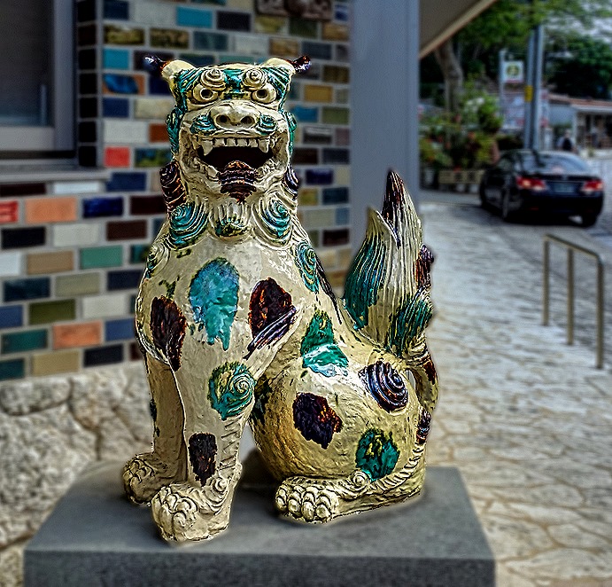 As we mentioned in the Ishigaki episode, shisa are a combination lion and dog and they generally come in pairs.  The female that is usually on the right has a closed mouth to retain good spirits, while the male that usually sits on her left has an open mouth to scare away evil spirits.  They are thought to have been first brought here from China in the 14th century as gifts for Ryukyu royalty and today you can see them everywhere, placed on roofs and in front of houses and other buildings to protect the premises.  Many of the shisa in the museum are single sculptures, perhaps because their pairs have been lost.  The shops on Kokusai street are full of colorful shisa, mostly small and looking mass produced for the tourist trade, although some are much nicer than that.  We really liked the more artistic shisa, which are all similar in design but each one distinct, and you will see a lot of them here (and tomorrow) since they are such an important part of this island.