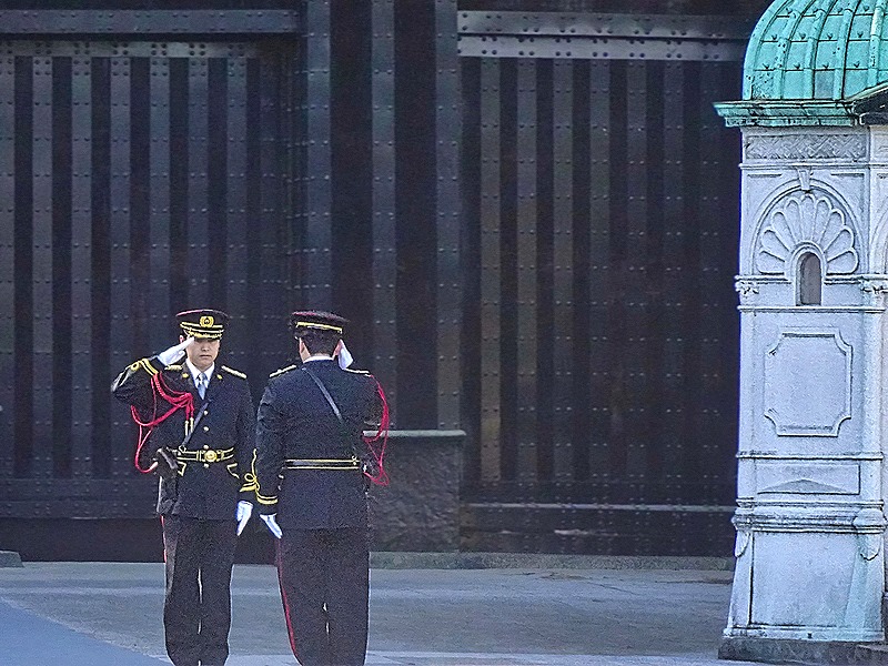 We were lucky to be there just at the right time to see the changing of the guard (actually we think our guide carefully timed our arrival). The Main Gate is located on the left side of the stone bridge and in front of it are two white guard houses with metal roofs. The guards came out, saluted each other, then went back (we didn’t notice any new guards replacing the old ones, but we could have missed that).