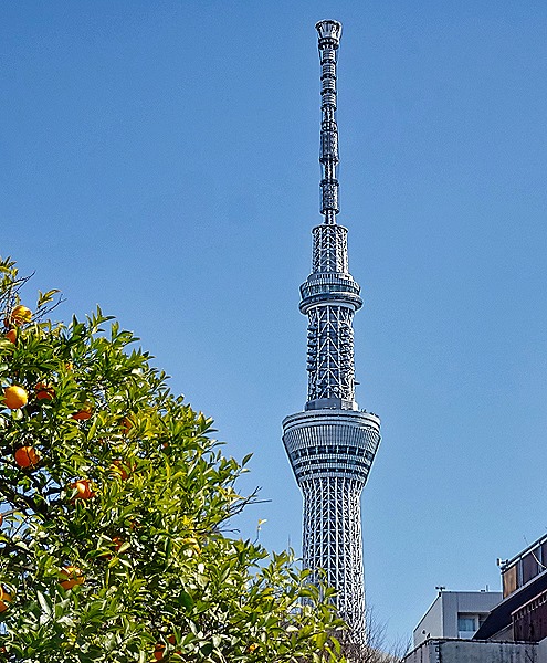 Tokyo has two broadcasting towers that loom high over the rest of the city. The orange and white painted Tokyo Tower opened in 1958 and is more than 1000 feet tall. Its design was inspired by the Eiffel Tower and until 2012 it was the tallest tower in Japan. In that year the Tokyo Skytree opened, less colorful but much taller at more than 2,000 feet. Its name was chosen in a nationwide straw poll. It is the third tallest structure in the world. Today most TV broadcasting is through the new tower which is tall enough for effective digital broadcasting. We saw the Tokyo Tower from the bus on our way into town in the morning and the Skytree rose well above the rooftops in Asakusa.