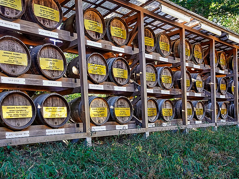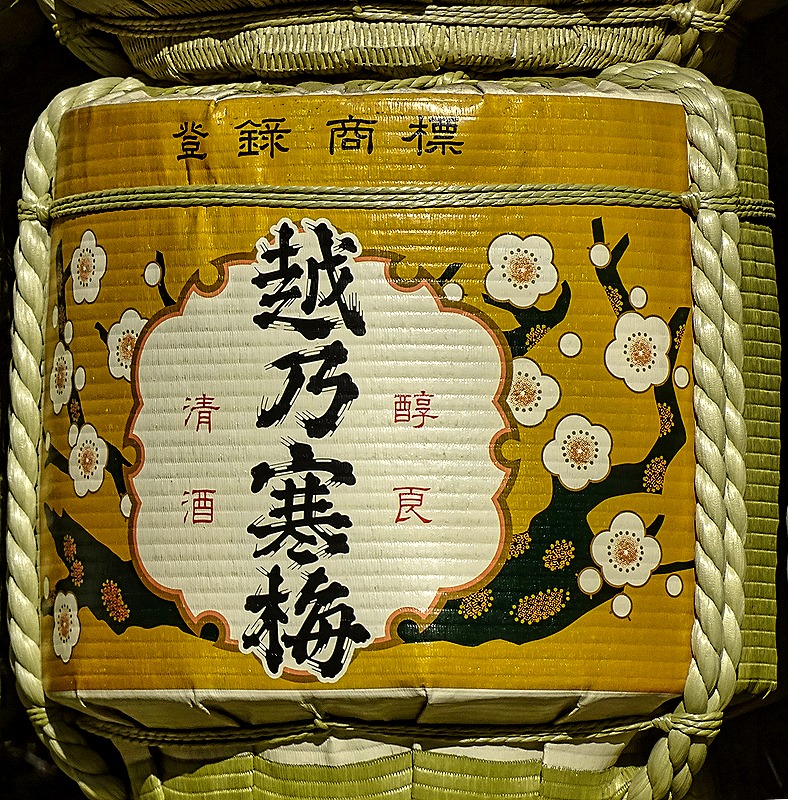We left the bus in a parking lot in the grounds of the shrine. It was a fairly long walk on gravel paths through a forest of more than 120,000 trees to reach the shrine itself. On the way we stopped to see a wall of some 200 (empty) barrels of sake donated by all the major breweries in Japan in exchange for prayers for the breweries’ prosperity. Each barrel had the donating brewery’s name and logo painted on it. Our guide pointed out one barrel he said was from the oldest brewery in Japan. There was also a smaller wall of French wine barrels, apparently representing the Emperor’s embrace of the modern world (and perhaps he liked French wine too). At wide intervals along the path were attractive lights in a traditional Japanese pattern. Finally there was an attractive low white building whose name and function we do not know.
