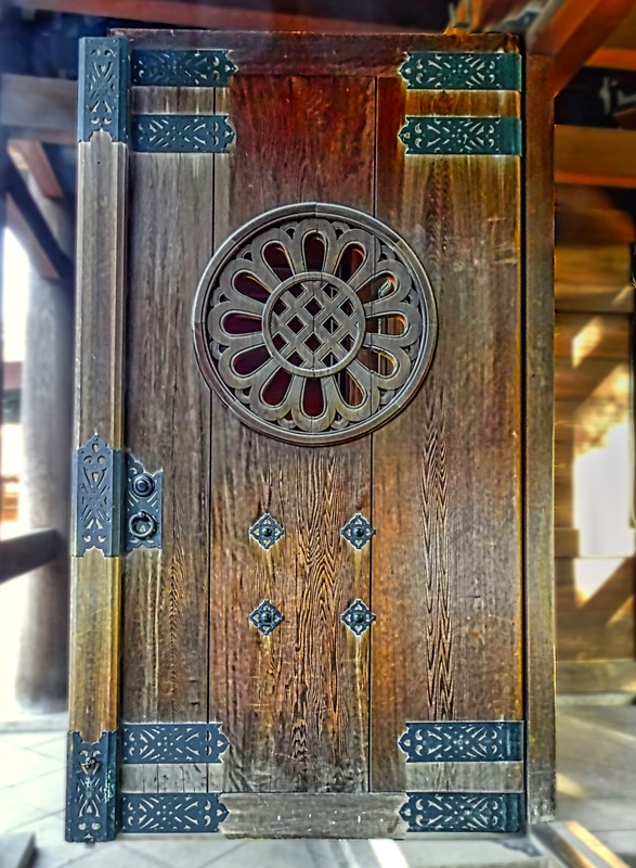 The Kondo is the main sanctuary sitting in the middle of the courtyard, but it was closed the day we were there so we didn’t see the inside. We also have pictures of two interesting buildings we can’t identify, one with a hexagon shape and a gold looking figure on the apex of the roof and another that is mostly red and white, with a surrounding porch sitting on short pillars.