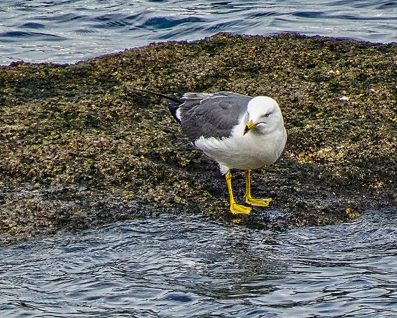 Walking along the waterfront we passed colorful flowers and a sea gull on a small sand bar in the water. There was a reddish brown headed duck swimming nearby and a park with old ship anchors and chains displayed in the sand.