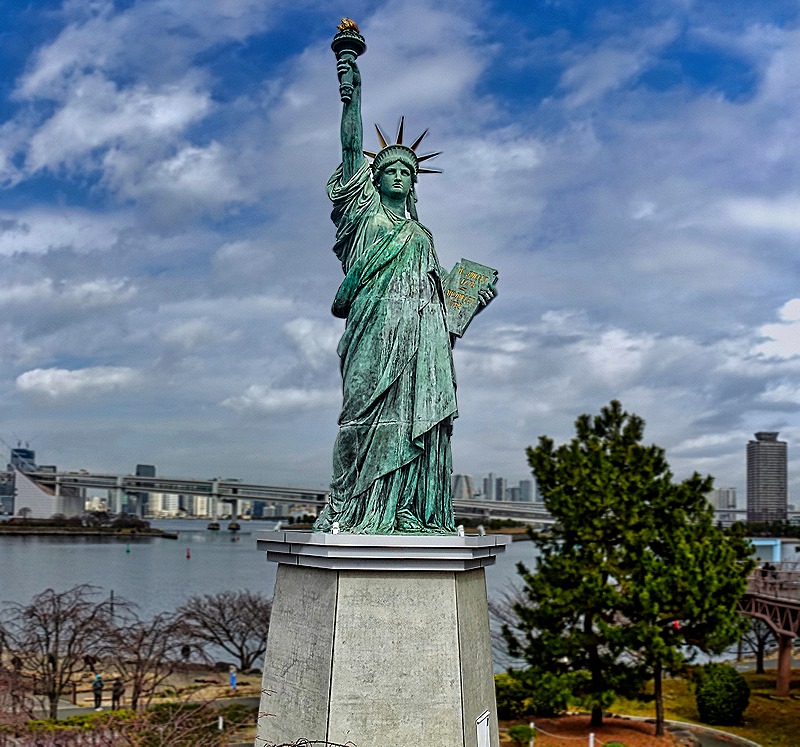 We walked through a big 80 store mall called Decks and back toward the waterfront on the boardwalk, where we saw a movie being filmed (they tried to shoo people away without much success). Then a little further we came to the Statue of Liberty. What, you thought that was in New York? Yes, but here is a 40 foot tall replica, about one seventh of the size of the original, erected here in 1998. And why stop at just one? There are also Statues of Liberty in Shimoda and Osaka. This was a tribute to Japan’s relationship with France, not the US.