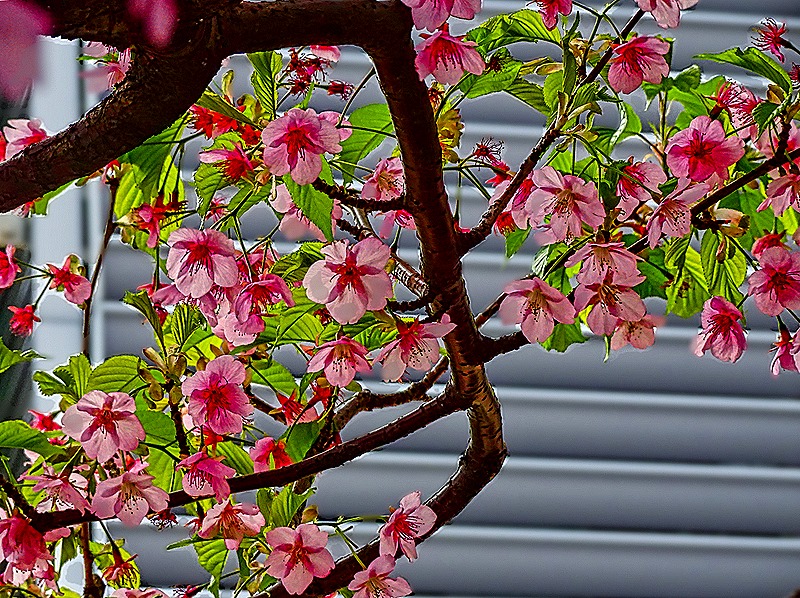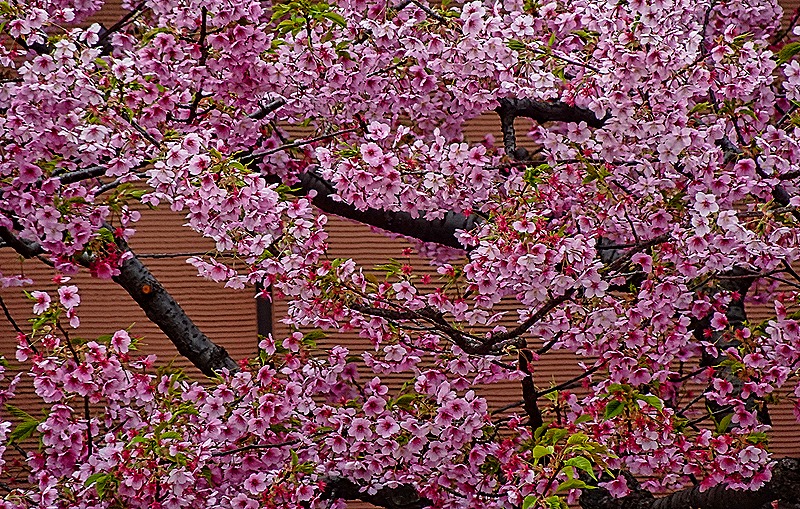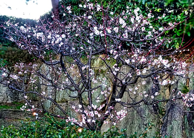 You may notice in these pictures there are two long and narrow islands in front of the Tokyo skyline. Numerous trees full of pink blossoms covered these islands when we were there. It seems we were there well before cherry blossom season, so these are most likely to be plum trees. No matter, they were quite beautiful, and we got a much closer look at some of them sitting in front of one of the malls on Odaiba.