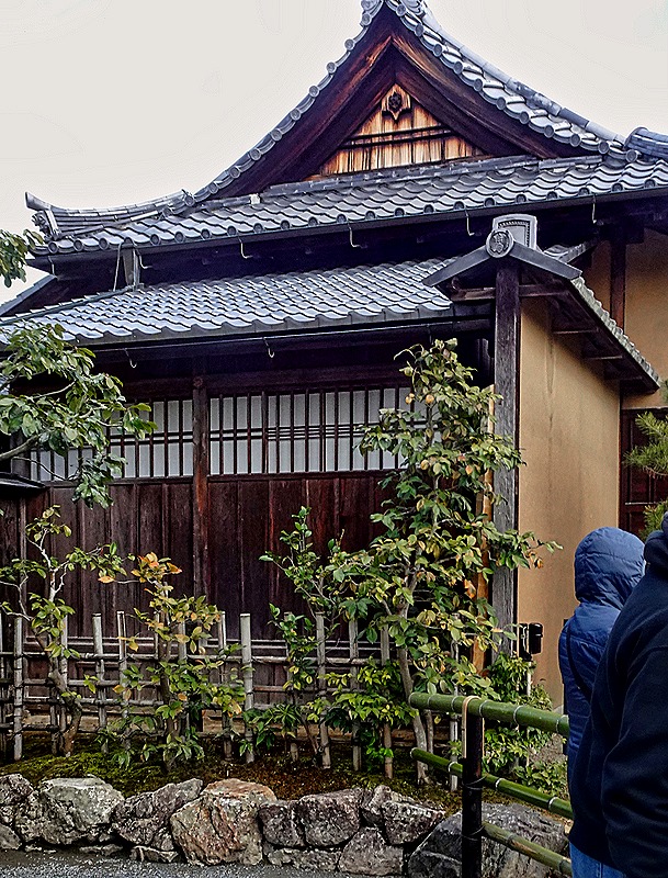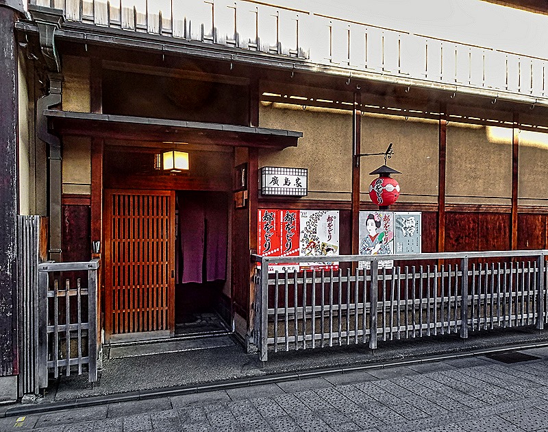 One famous building we passed is the Ichiriki Chaya (Teahouse). More than 300 years old, this has been an important building here since the beginning of the Gion district. It figures in the prominent story of the 47 ronin samurai, who were all forced to kill themselves after avenging the death of their master, and it was the scene of much of the plotting to end the shogunate in the 1860’s, which led to the Meiji Restoration. Access to the building and its geisha entertainment is strictly limited, mostly to individuals whose families have been patrons for generations.