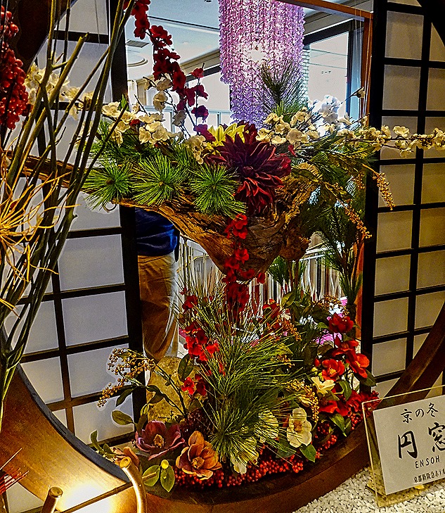 We had a buffet Japanese lunch in a hotel restaurant across the street from the very modern central train station in Kyoto. The food was good but the long buffet line was inefficient and time consuming. From our seat at the table we had a nice view of the interesting abstract facade of the train station.